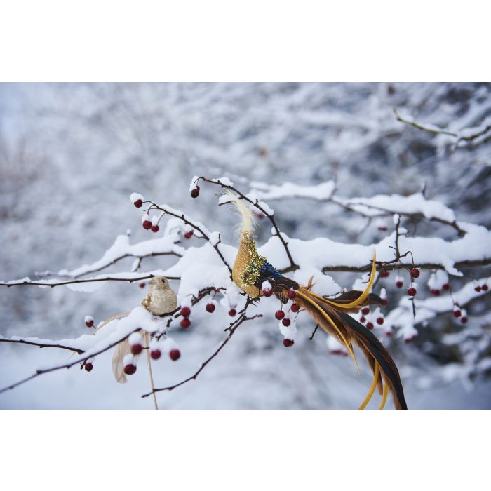 Påfågel med fjädersvans på klämma - Beige bröst är restnoterad och skickas så snart den finns i lager igen.