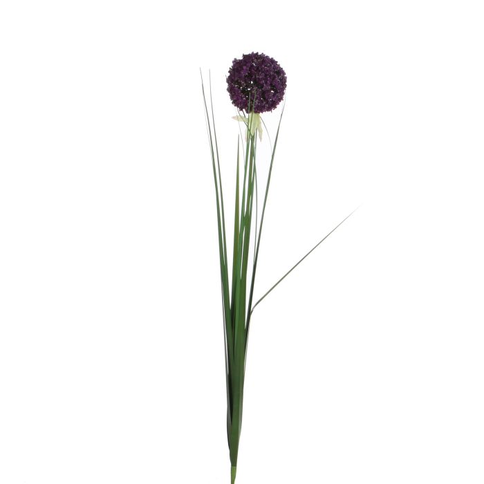 Konstväxt gräslök lila med stort blomhuvud och långa, tunna blad. Konstväxt är naturtrogen och av hög kvalitet. Kan placeras ensam i en smal vas eller kombineras med andra blommor i buketter.