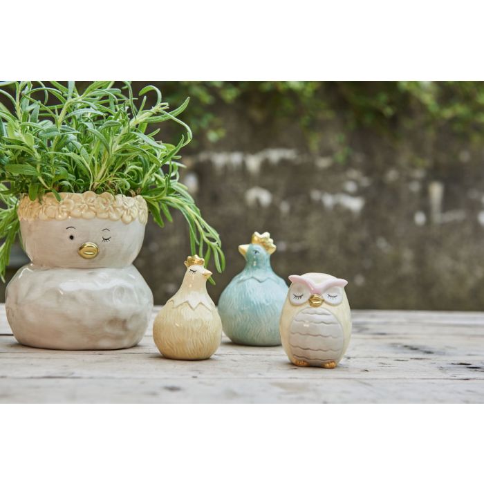 Höna i aquafärgade nyanser med guldfärgad kam och näbb från Speedtsberg. Påskfiguren finns i flera storlekar och nyanser. Dekorera till exempel påskbordet med hönor och färgade påskägg.