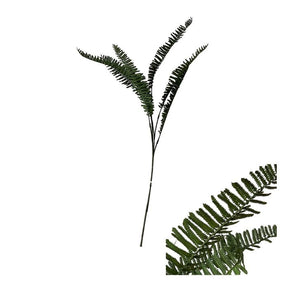 Ett frodigt och grönt inslag i dina dekorationer i form av denna konstgjorda stjälk med 6 ormbunksblad i en vacker mörkgrön nyans. De detaljerade bladen har ett naturtroget utseende som ger fyllighet och liv åt buketter och arrangemang. Stjälken kan användas ensam i en vas för ett enkelt och elegant uttryck, eller kombineras med blommor och andra grenar för att skapa en frodig bukett. Den är också idealisk som del av kransar, korgar eller bordsdekorationer.