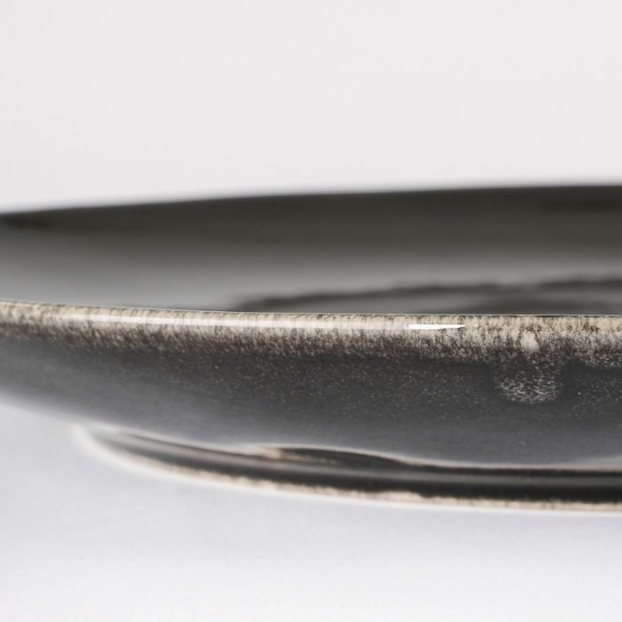 Tabo middagstallrik i stengods i svart färg. Denna ljuvliga stengodsserie i naturlig, cremefärgad nyans har en vacker färgvariation i glasyren. Alla produkter i serien har unika, organiska former. Serien består av skålar, tallrikar och muggar.